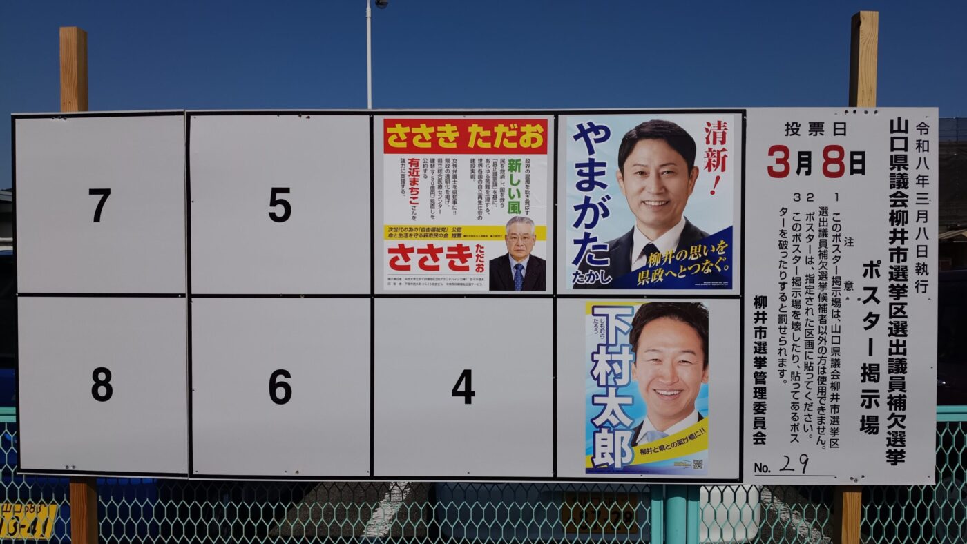 山口県議会柳井市選挙区選出議員補欠選挙の開票をみんなで見届けましょう。